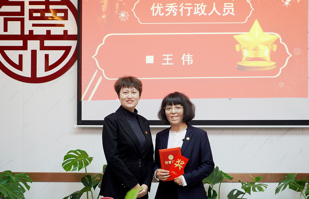 随后,刘宗业律师宣布了荣获优秀员工的名单,并由主任苗静,管理合伙人穆新军、赵佳、王庆豹、许宾分别向优秀员工颁发了证书及奖金。